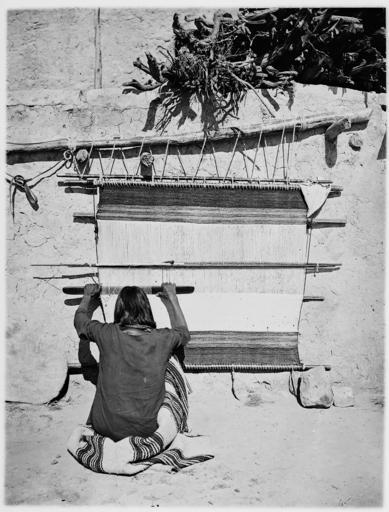 | Keywords: Navaho woman weaving at loom - NARA - 523806.jpg Scope and content General notes 523806 Local identifier 106-IN-2435B Smithsonian Institution Bureau of American Ethnology 1897 - 1965 NARA-Author Hillers John K 1843-1925 Photographer 3028457 <br /> Still Picture Records Section Special Media Archives Services Division NWCS-S National Archives at College Park 8601 Adelphi Road College Park MD 20740-6001 circa 1871 1907 Record group Record Group 106 Records of the Smithsonian Institution 1871 - 1952 Record group ARC 435 Photographic Negatives of Native American Delegations and Archaeology of the Southwestern United States compiled 1879 - 1907 documenting the period 1595 - 1907 Series ARC 523558 File unit File unit ARC Variant control numbers NAIL Control Number NWDNS-106-IN-2435B Other versions <gallery> File Navaho_woman_weaving_at_loom_-_NARA_-_523806 tif tif File Navaho_woman_weaving_at_loom_-_NARA_-_523806 jpg jpg </gallery> File Navajo weaver spinning wool into yarn full-length seated with a loom behind her Torreon New Mexico - NARA - 519159 tif NARA-cooperation PD-USGov John K Hillers Historical photographs of Navajo people Navajo weaving Spinning wool |