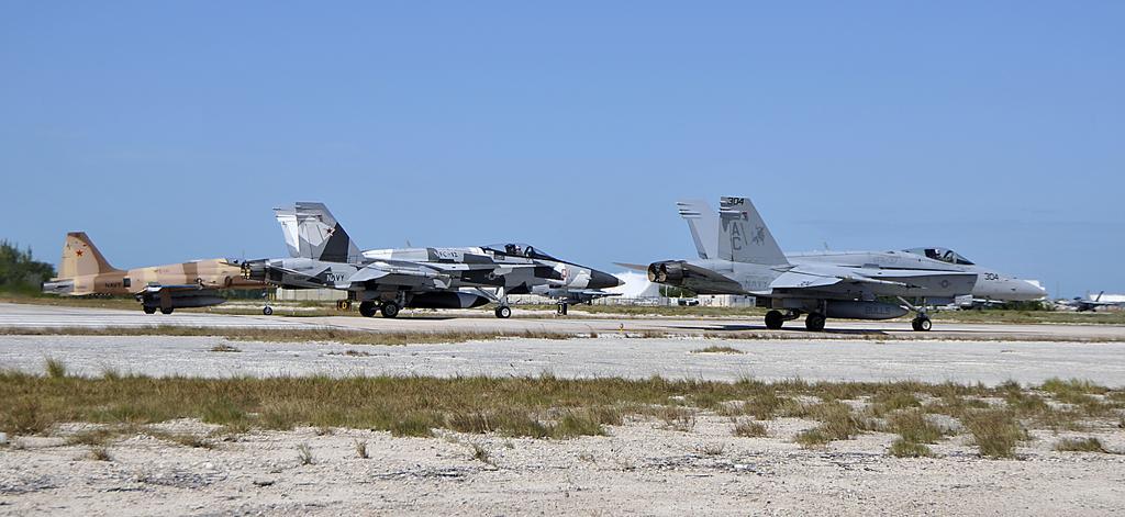 Keywords: Naval Air Forces Fly! Fight! Win! 141104-N-YB753-080.jpg en From left an F-5N Tiger II assigned to the Sun Downers of Fighter Squadron Composite VFC 111 an F/A-18C assigned to the Fighting Omars of VFC-12 and an F/A-18C Hornet assigned to the Ragin' Bulls of Strike Fighter Squadron VFA 37 line up to launch from Boca Chica Field Naval Air Station Key West is a state-of-the-art facility for air-to-air combat fighter aircraft of all military services and provides world-class pierside support to U S and foreign naval vessels U S Navy photo by Mass Communication Specialist 1st Class Brian Morales/ Released 2014-11-04 Petty Officer 1st Class Brian Morales https //www dvidshub net/image/1647861 141104-N-YB753-080 2014-11-07 12 58 KEY WEST FL US PD-USGov-Military-Navy Naval Air Station Key West F/A-18C Hornet Images from DoD uploaded by Fæ |