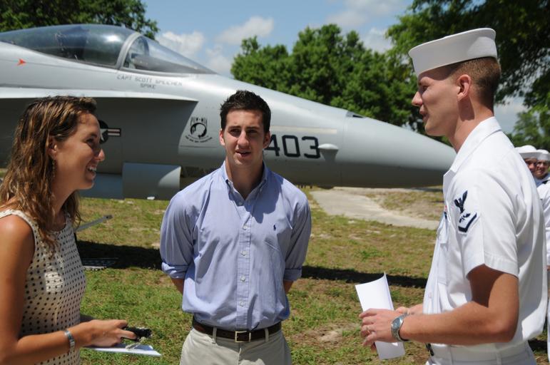 Keywords: Naval Aviation Museum Foundation's Symposium 090508-N-OY319-001.jpg en Meghan and Michael Speicher children of lost Gulf War aviator Capt Michael Scott Speicher speak with AM3 Anthony Gist May 8 at the Naval Aviation Museum Foundation's Symposium 09 which was held at Naval Air Station Pensacola Fla May 7-8 Gist an aircraft maintenance specialist with Speicher's former squadron the VFA-81 Sunliners had been sent to Pensacola the previous week to apply the squadron's markings the POW/MIA logo and the name Capt Michael Scott Speicher to an F/A-18 Hornet The aircraft was dedicated to the Speicher family in a ceremony at the close of the symposium The F/A-18 will remain on permanent display outside NAS Pensacola's Naval Aviation Schools Command U S Navy photo by Mike O'Connor/Released 2009-05-08 https //www dvidshub net/image/1574471 090508-N-OY319-001 2014-09-29 14 42 PENSACOLA FL US PD-USGov-Military-Navy Naval Air Station Pensacola Images from DoD uploaded by Fæ |