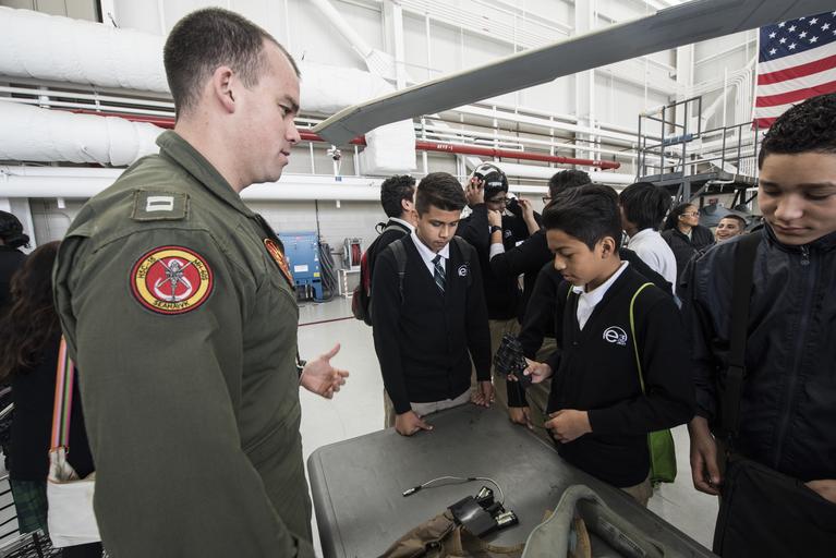 | Keywords: Naval Base Coronado Hosts e3 Civic High for Job Shadow Day 160311-N-LR795-163.jpg en SAN DIEGO - Lt Ian Flowers assigned to Helicopter Sea Combat Squadron 15 explains night vision goggles to students of E3 Civic High School during a job shadow tour on Naval Air Station North Island <br>Unit Naval Base Coronado 2016-03-11 March 11 2016 https //www dvidshub net/image/2482346/naval-base-coronado-hosts-e3-civic-high-job-shadow-day 160311-N-LR795-163 2016-03-23 15 05 CORONADO CA US PD-USGov-Military-Navy Naval Air Station North Island Night vision equipment Images from DoD uploaded by Fæ |