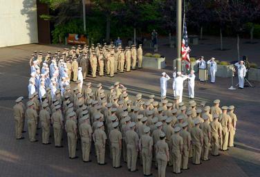 Keywords: Naval Base Kitsap-Bangor 9-11 Remembrance Ceremony 160911-N-UD469-068.jpg en BANGOR Wash Sept 11 2016 Sailors stand at attention as the national ensign is raised to half-mast during a 9/11 Remembrance Ceremony outside of the Trident Training Facility at Naval Base Kitsap-Bangor The ceremony held by the 2017 Pacific Northwest Chief Petty Officer Selects marks the 15th anniversary of the 9/11 attacks and honors those who lost their lives that day U S Navy photo by Mass Communication Specialist 1st Class Amanda R Gray/Released <br>Unit Commander Submarine Group Nine 2016-09-11 Petty Officer 1st Class Amanda Gray https //www dvidshub net/image/2844432/naval-base-kitsap-bangor-9-11-remembrance-ceremony 160911-N-UD469-068 2016-09-11 11 44 BANGOR WA US PD-USGov-Military-Navy Naval Base Kitsap Images from DoD uploaded by Fæ |