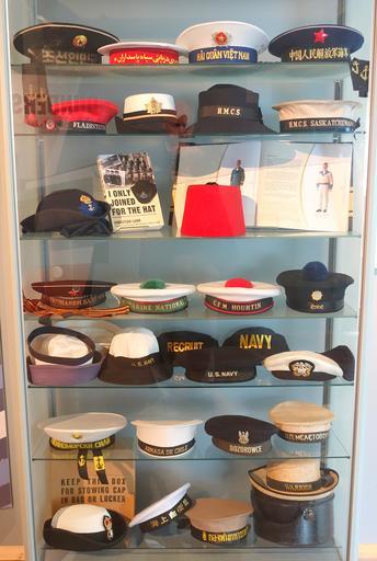Keywords: Naval hats of the world - Marinmuseum, Karlskrona, Sweden - DSC08936.JPG en Exhibit in the Marinmuseum Karlskrona Sweden This work is old enough so that it is in the public domain Photography was permitted in the museum without restriction 2014-09-11 07 15 58 own Daderot other versions cc-zero Miscellany in Marinmuseum Uploaded with UploadWizard Military headgear |