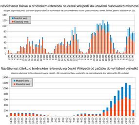 Keywords: Návštěvnost článku o brněnském referendu 2016 na Wikipedii.svg cs Grafy znázorňují počet návštěv článku Referendum o poloze hlavního nádraží v Brně 2016 na české Wikipedii v jednotlivých hodinách okolo doby konání referenda 7 8 října Nahoře Návštěvnost článku o brněnském referendu na české Wikipedii do uzavření hlasovacích místností Dole Návštěvnost článku o brněnském referendu na české Wikipedii od začátku do vyhlášení výsledků 2016-10-09 own Marek Blahuš other versions cc-zero Brno main railway station referendum 2016 Wikipedia article traffic statistics |