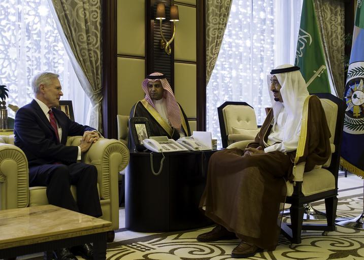 | Keywords: Navy secretary in Saudi Arabia 130518-N-AC887-004.jpg en Secretary of the Navy Ray Mabus meets with the Crown Prince of Saudi Arabia Salaman bin Abdulaziz in Jeddah Saudi Arabia Mabus is in Saudi Arabia as part of a larger visit throughout the region where he is meeting with military and civilian leaders to discuss security in the region and speaking with Sailors and Marines to thank them for their service and sacrifice U S Navy photo by Chief Mass Communication Specialist Sam Shavers/Released 2013-05-18 Samuel Shavers https //www dvidshub net/image/937072 130518-N-AC887-004 2013-05-20 23 10 JEDDAH SA PD-USGov-Military-Navy Ray Mabus Images from DoD uploaded by Fæ |