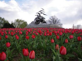 Keywords: NavyMarineMemorial tulips.jpg Navy “ Merchant Marine Memorial tulips in bloom next to Mount Vernon Trail on Lady Bird Johnson Park own Bobco85 2009-04-08 Cc-zero Navy “ Merchant Marine Memorial Red tulips Unidentified Tulipa cultivars