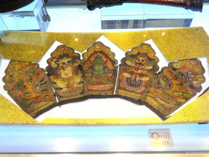 Keywords: Naxi five-Buddha hat - Yunnan Provincial Museum- DSC02116.JPG Naxi five-Buddha hat Exhibit in the Yunnan Provincial Museum Kunming Yunnan China I took this photograph 2011-08-09 00 20 01 Daderot Public domain Miscellany in the Yunnan Provincial Museum Naxi clothing |