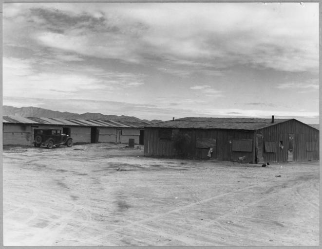 | Keywords: Near Buckeye, Maricopa County, Arizona. Cotton pickers' barracks. Double row of 20 single-room apart . . . - NARA - 522245.jpg Scope and content Full caption reads as follows Near Buckeye Maricopa County Arizona Cotton pickers' barracks Double row of 20 single-room apartments with dirt floors Corrugated iron construction including partitions Rooms about 10 feet by 10 feet size When photograph was made all pickers were at work in the field General notes 522245 Local identifier 83-G-44076 Department of Agriculture Bureau of Agricultural Economics Division of Economic Information ca 1922 - ca 1953 NARA-Author Lange Dorothea 1895-1965 Photographer 1372774 <br /> Still Picture Records Section Special Media Archives Services Division NWCS-S National Archives at College Park 8601 Adelphi Road College Park MD 20740-6001 11/1940 Record group Record Group 83 Records of the Bureau of Agricultural Economics 1876 - 1959 Record group ARC 412 Photographic Prints Documenting Programs and Activities of the Bureau of Agricultural Economics and Predecessor Agencies compiled ca 1922 - ca 1947 documenting the period ca 1911 - ca 1947 Series ARC 521048 File unit File unit ARC Variant control numbers NAIL Control Number NWDNS-83-G-44076 Other versions <gallery> File Near_Buckeye _Maricopa_County _Arizona _Cotton_pickers'_barracks _Double_row_of_20_single-room_apart_ _ _ _-_NARA_-_522245 tif tif File Near_Buckeye _Maricopa_County _Arizona _Cotton_pickers'_barracks _Double_row_of_20_single-room_apart_ _ _ _-_NARA_-_522245 jpg jpg </gallery> NARA-cooperation PD-USGov Dorothea Lange Buckeye Arizona |