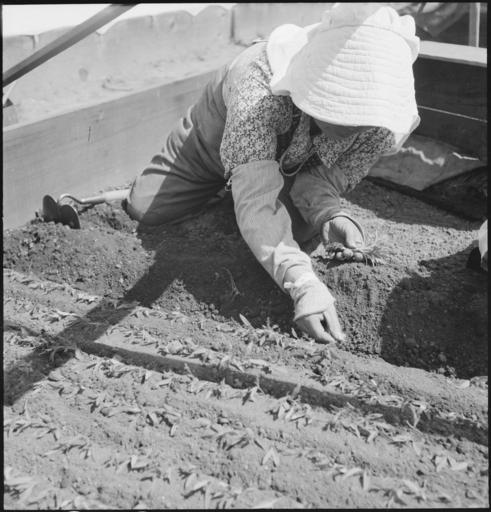 | Keywords: Near Centerville, California. This farm woman of Japanese ancestry is transplanting tomato plants i . . . - NARA - 537667.jpg Scope and content The full caption for this photograph reads Near Centerville California This farm woman of Japanese ancestry is transplanting tomato plants into growing beds prior to evacuation General notes 537667 Local identifier 210-G-C321 Department of the Interior War Relocation Authority 02/16/1944 - 06/30/1946 NARA-Author Lange Dorothea 1895-1965 Photographer 1372774 <br /> Still Picture Records Section Special Media Archives Services Division NWCS-S National Archives at College Park 8601 Adelphi Road College Park MD 20740-6001 1942-03-27 Record group Record Group 210 Records of the War Relocation Authority 1941 - 1989 Record group ARC 537 Central Photographic File of the War Relocation Authority compiled 1942 - 1945 Series ARC 536000 File unit File unit ARC Variant control numbers NAIL Control Number NWDNS-210-G-C321 Other versions <gallery> File Near_Centerville _California _This_farm_woman_of_Japanese_ancestry_is_transplanting_tomato_plants_i_ _ _ _-_NARA_-_537667 tif tif File Near_Centerville _California _This_farm_woman_of_Japanese_ancestry_is_transplanting_tomato_plants_i_ _ _ _-_NARA_-_537667 jpg jpg </gallery> NARA-cooperation PD-USGov Japanese American internment processing in Centerville Alameda County California Women at work in California Farms in California Solanum lycopersicum Dorothea Lange Black and white photographs of women |
