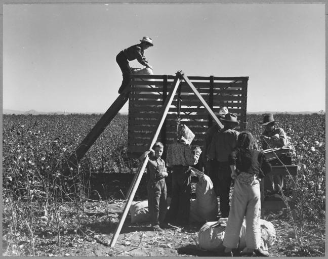 Keywords: Near Coolidge, Maricopa County, Arizona. These pickers are all members of families who live and work . . . - NARA - 522215.jpg Scope and content Full caption reads as follows Near Coolidge Maricopa County Arizona These pickers are all members of families who live and work on the project -- here shown harvesting their own cotton General notes 522215 Local identifier 83-G-44046 Department of Agriculture Bureau of Agricultural Economics Division of Economic Information ca 1922 - ca 1953 NARA-Author Lange Dorothea 1895-1965 Photographer 1372774 <br /> Still Picture Records Section Special Media Archives Services Division NWCS-S National Archives at College Park 8601 Adelphi Road College Park MD 20740-6001 11/1940 Record group Record Group 83 Records of the Bureau of Agricultural Economics 1876 - 1959 Record group ARC 412 Photographic Prints Documenting Programs and Activities of the Bureau of Agricultural Economics and Predecessor Agencies compiled ca 1922 - ca 1947 documenting the period ca 1911 - ca 1947 Series ARC 521048 File unit File unit ARC Variant control numbers NAIL Control Number NWDNS-83-G-44046 Other versions <gallery> File Near_Coolidge _Maricopa_County _Arizona _These_pickers_are_all_members_of_families_who_live_and_work_ _ _ _-_NARA_-_522215 tif tif File Near_Coolidge _Maricopa_County _Arizona _These_pickers_are_all_members_of_families_who_live_and_work_ _ _ _-_NARA_-_522215 jpg jpg </gallery> NARA-cooperation PD-USGov Dorothea Lange Maricopa County Arizona |