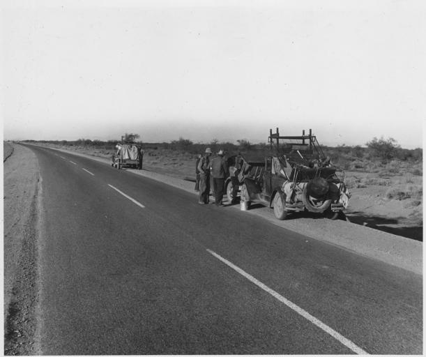 | Keywords: Near Coolidge on Highway 87, Pinal County, Arizona. Migratory white cotton pickers stopped by engine . . . - NARA - 522379.jpg Scope and content Full caption reads as follows Near Coolidge on Highway 87 Pinal County Arizona Migratory white cotton pickers stopped by engine trouble alongside the road Related family groups frequently travel like this in pairs or in caravans of three or four General notes 522379 Local identifier 83-G-44210 Department of Agriculture Bureau of Agricultural Economics Division of Economic Information ca 1922 - ca 1953 NARA-Author Lange Dorothea 1895-1965 Photographer 1372774 <br /> Still Picture Records Section Special Media Archives Services Division NWCS-S National Archives at College Park 8601 Adelphi Road College Park MD 20740-6001 11/1940 Record group Record Group 83 Records of the Bureau of Agricultural Economics 1876 - 1959 Record group ARC 412 Photographic Prints Documenting Programs and Activities of the Bureau of Agricultural Economics and Predecessor Agencies compiled ca 1922 - ca 1947 documenting the period ca 1911 - ca 1947 Series ARC 521048 File unit File unit ARC Variant control numbers NAIL Control Number NWDNS-83-G-44210 Other versions <gallery> File Near_Coolidge_on_Highway_87 _Pinal_County _Arizona _Migratory_white_cotton_pickers_stopped_by_engine_ _ _ _-_NARA_-_522379 tif tif File Near_Coolidge_on_Highway_87 _Pinal_County _Arizona _Migratory_white_cotton_pickers_stopped_by_engine_ _ _ _-_NARA_-_522379 jpg jpg </gallery> NARA-cooperation PD-USGov Dorothea Lange Pinal County Arizona |