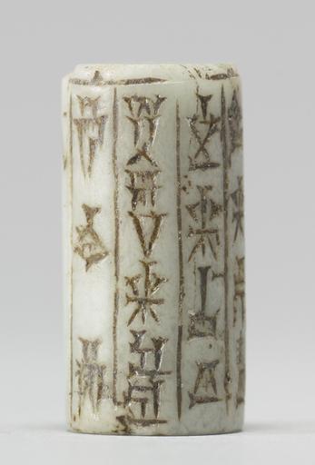 Keywords: Near Eastern - Cylinder Seal with Two Figures and Inscriptons - Walters 42669 - Side A.jpg The depicted scene features a man in a short tunic He faces a standing deity with a horned crown and long flounced robe with both arms raised The scene also incorporates a cuneiform inscription in four registers date Old Babylonian greenish-white stone cm 2 4 1 2 accession number 42 669 11359 Sadie Jones Mrs Henry Walters New York date and mode of acquisition unknown Sale Joseph Brummer New York 1941 Walters Art Museum 1941 by purchase Museum purchase 1941 Inscription place of origin Mesopotamia Walters Art Museum license Cylinder seals in the Walters Art Museum Art of the ancient Near East Cuneiform on cylinder seals Cuneiform on media Inscription + 2 figures cylinder seal Walters 42669 Walters Art Museum cylinder seals with cuneiform DUMU son Sumerogram ÌR servant Sumerogram DINGIR god-as-star Sumerogram Media contributed by the Walters Art Museum needs category review |