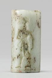 Keywords: Near Eastern - Cylinder Seal with Two Figures and Inscriptons - Walters 42669 - Side D.jpg The depicted scene features a man in a short tunic He faces a standing deity with a horned crown and long flounced robe with both arms raised The scene also incorporates a cuneiform inscription in four registers date Old Babylonian greenish-white stone cm 2 4 1 2 accession number 42 669 11359 Sadie Jones Mrs Henry Walters New York date and mode of acquisition unknown Sale Joseph Brummer New York 1941 Walters Art Museum 1941 by purchase Museum purchase 1941 Inscription place of origin Mesopotamia Walters Art Museum license Cylinder seals in the Walters Art Museum Art of the ancient Near East Cuneiform on cylinder seals Cuneiform on media Inscription + 2 figures cylinder seal Walters 42669 Walters Art Museum cylinder seals with cuneiform DUMU son Sumerogram ÌR servant Sumerogram DINGIR god-as-star Sumerogram Media contributed by the Walters Art Museum needs category review |