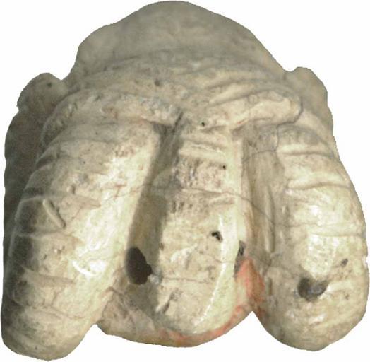 Keywords: Near Eastern - Ram's Head - Walters 7131 - Back.jpg This tiny pendant is carved with close attention to anatomical detail The modeled eyes have long tear ducts There are ridges on the horns The hair over the forehead is indicated by stripes There are traces of red pigment on the face and under the jaw The piece is horizontally perforated through the knob placed behind the horns Pendants in the shape of rams' heads are well known in the Near East These heads differ from the familiar ram's head of the ancient Egyptian god Khnum in having horns that lie close to the head and a forelock date bone cm 0 78 1 73 1 1 accession number 71 31 26186 Henry Walters Baltimore date and mode of acquisition unknown Walters Art Museum Henry Walters Acquired by Henry Walters place of origin Near East Walters Art Museum license Ancient Near East art in the Walters Art Museum Jewellery in the Walters Art Museum Art of the ancient Near East Media contributed by the Walters Art Museum needs category review |