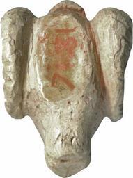 Keywords: Near Eastern - Ram's Head - Walters 7131 - Bottom.jpg This tiny pendant is carved with close attention to anatomical detail The modeled eyes have long tear ducts There are ridges on the horns The hair over the forehead is indicated by stripes There are traces of red pigment on the face and under the jaw The piece is horizontally perforated through the knob placed behind the horns Pendants in the shape of rams' heads are well known in the Near East These heads differ from the familiar ram's head of the ancient Egyptian god Khnum in having horns that lie close to the head and a forelock date bone cm 0 78 1 73 1 1 accession number 71 31 26186 Henry Walters Baltimore date and mode of acquisition unknown Walters Art Museum Henry Walters Acquired by Henry Walters place of origin Near East Walters Art Museum license Ancient Near East art in the Walters Art Museum Jewellery in the Walters Art Museum Art of the ancient Near East Media contributed by the Walters Art Museum needs category review |
