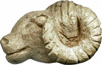 Keywords: Near Eastern - Ram's Head - Walters 7131 - Left.jpg This tiny pendant is carved with close attention to anatomical detail The modeled eyes have long tear ducts There are ridges on the horns The hair over the forehead is indicated by stripes There are traces of red pigment on the face and under the jaw The piece is horizontally perforated through the knob placed behind the horns Pendants in the shape of rams' heads are well known in the Near East These heads differ from the familiar ram's head of the ancient Egyptian god Khnum in having horns that lie close to the head and a forelock date bone cm 0 78 1 73 1 1 accession number 71 31 26186 Henry Walters Baltimore date and mode of acquisition unknown Walters Art Museum Henry Walters Acquired by Henry Walters place of origin Near East Walters Art Museum license Ancient Near East art in the Walters Art Museum Jewellery in the Walters Art Museum Art of the ancient Near East Media contributed by the Walters Art Museum needs category review |
