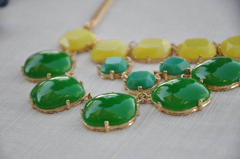Keywords: necklace jewelry fashion gift accessory yellow green gems big