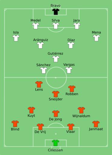 Keywords: NED-CHI 2014-06-23.svg 2014 FIFA World Cup Group B match between the Netherlands and Chile 2014-06-23 19 02 07 own <br />Line-ups http //resources fifa com/mm/document/tournament/competition/02/38/21/43/eng_36_0623_ned-chi_tacticalstartlist pdf Davykamanzi cc-zero Uploaded with UploadWizard FIFA World Cup 2014 line-ups Chile national football team line-ups Netherlands national football team line-ups Chile at the 2014 FIFA World Cup Netherlands at the 2014 FIFA World Cup FIFA World Cup 2014 group B |