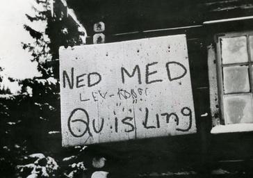 Keywords: protest h7 ns krigen okkupasjon text signboard sign writing blackandwhite black and white BeskRivelse: Foto i konvolutt fra NTBs krigsarkiv, konvolutten merket med teksten: ”Overalt i Norge kan man finne V-tegn, H7-tegn eller Leve Kongen. De finnes på alle plasser, så det er ikke vanskelig å skjønne hvor nordmennenes hjerter er.” Fotoet stammer fra NTBs krigsarkiv og dokumenterer nordmenns protest mot NS og okkupasjonsmyndighetene i krigsprene 1940-1945. NTBs krigsarkiv består av en samling fotografier fra blant annet Regjeringens Informasjonskontor i London, Pressekontoret i Stockholm og Norsk Telegrambyrå i Oslo. Arkivet inneholder over 50 000 bilder og negativer fra 2. verdenskrig. Arkivreferanse: Riskarkivet, PA-1209_Ue110_006, NTBs krigsarkiv, Ue 110. GET RID OF QUISLING Photo in an envelope from NTB’s war archive, the envelope is marked with the text: “Everywhere in Norway you can find V symbols, H7 symbols or “Long live the King”. They are everywhere, so it is not hard to understand where the Norwegians’ hearts are.” The photo comes from the NTB’s war archive and documents the Norwegians’ protest against the NS (nazi party) and the occupation forces during the war years 1940-45. NTB’s war archive consists of a photo collection from the Norwegian government’s information office in London, the Press Office in Stockholm and Norsk Telegrambyrå in Oslo. The archive contains more than 50 000 photos and negatives from WWII. BeskRivelse: Foto i konvolutt fra NTBs krigsarkiv, konvolutten merket med teksten: ”Overalt i Norge kan man finne V-tegn, H7-tegn eller Leve Kongen. De finnes på alle plasser, så det er ikke vanskelig å skjønne hvor nordmennenes hjerter er.” Fotoet stammer fra NTBs krigsarkiv og dokumenterer nordmenns protest mot NS og okkupasjonsmyndighetene i krigsprene 1940-1945. NTBs krigsarkiv består av en samling fotografier fra blant annet Regjeringens Informasjonskontor i London, Pressekontoret i Stockholm og Norsk Telegrambyrå i Oslo. Arkivet inneholder over 50 000 bilder og negativer fra 2. verdenskrig. Arkivreferanse: Riskarkivet, PA-1209_Ue110_006, NTBs krigsarkiv, Ue 110. GET RID OF QUISLING Photo in an envelope from NTB’s war archive, the envelope is marked with the text: “Everywhere in Norway you can find V symbols, H7 symbols or “Long live the King”. They are everywhere, so it is not hard to understand where the Norwegians’ hearts are.” The photo comes from the NTB’s war archive and documents the Norwegians’ protest against the NS (nazi party) and the occupation forces during the war years 1940-45. NTB’s war archive consists of a photo collection from the Norwegian government’s information office in London, the Press Office in Stockholm and Norsk Telegrambyrå in Oslo. The archive contains more than 50 000 photos and negatives from WWII.