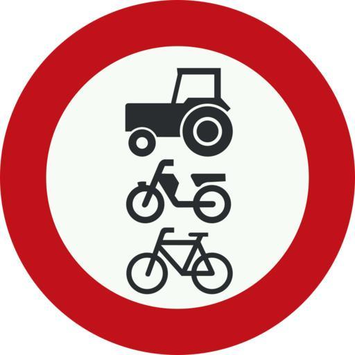 Keywords: Nederlands verkeersbord C9.svg Netherlands road sign C9 - No access for riders cattle wagons motor vehicles not able to exceed a speed of 25km/h microcars bicycles mopeds or invalid carriages Nederlands verkeersbord C9 - Gesloten voor ruiters vee wagens motorvoertuigen die niet sneller kunnen of mogen rijden dan 25 km/h en brommobielen alsmede fietsen bromfietsen en gehandicaptenvoertuigen http //www verkeerenwaterstaat nl/Images/RVV_2006_tcm195-160624 pdf Verkeersborden en Verkeersregels in Nederland 2007-08-04 SVG version by Bouwe Brouwer PD-NL-verkeersbord Category Motorcycle silhouettes Diagrams of road signs of the Netherlands road closed warnings C09 Bicycles forbidden road signs Prohibitory road signs Black red white road signs Tractors forbidden signs |