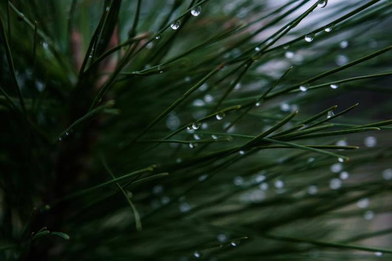 Keywords: needles conifer macro tree closeup green evergreen wet water rain droplets organic nature flora growth plant twig pine