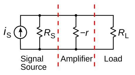 Keywords: Negative resistance amplifier diagram.svg negative resistance amplifier Negative resistance amplifiers using devices like tunnel diodes and Gunn diodes are used at microwave frequencies The amplifier just consists of a negative differential resistance device represented here by a resistor with a negative value ˆ’r in parallel with the source and load resistances 2014-07-28 11 44 37 own Chetvorno cc-zero Uploaded with UploadWizard Negative resistance SVG electricity |