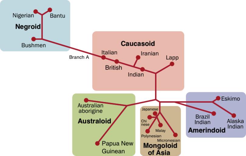 Keywords: Neighbor-joining Tree-2.png svg This genetic distance map made in 2002 is an estimate of 18 world human groups by a neighbour-joining method based on 23 kinds of genetic information <br /> This derivative work fixes the mistranslation present in the original reproduction ネグロイド Neguroido translates as Negroid not African コーカソイド Kōkasoido translates as Caucasoid not Caucasian オーストラロイド Ōsutoraroido translates as Australoid not Oceanian アシアのモンゴロイド Ashia no Mongoroido translates to Mongoloid of Asia not East Asian Lastly アメリンド Amerindo translates as Amerindoid The original Japanese version can be found here https //web archive org/web/20020819145118/http //www museum kyushu-u ac jp/WAJIN/113 html archived August 19 2002 version of the website at the Wayback Machine The version in Spanish is here File Árbol_de_uniéndose_de_vecinos png Neighbor-joining Tree svg 2011-08-07 04 37 UTC Ephert Neighbor-joining Tree svg 100 wikitable colspan 4 <center>Labels of the Original Chart</center> - Color Japanese Romanization English - colspan 4 - none A Eda A Branch A - colspan 4 - Blue ネグロイド Neguroido Negroid - Blue ナイジェリア人 Naijeria-jin Nigerian people - Blue バンツー人 Bantsū-jin Bantu people - Blue ブッシュマン Busshuman Bushmen - colspan 4 - Pink コーカソイド Kōkasoido Caucasoid - Pink イタリア人 Itaria-jin Italian people - Pink イラン人 Iran-jin Iranian people - Pink ラップ人 Rappu-jin Lapp people - Pink インド人 Indo-jin Indian people India - Pink イギリス人 Igirisu-jin British people - colspan 4 - Green オーストラロイド Ōsutoraroido Australoid - Green オーストラリア 原住民 Ōsutoraria Genjūmin Australian aborigine - Green パプア ニューギニア人 Papua Nyūsuginia-jin Papua New Guinean people - colspan 4 - Brown アシアのモンゴロイド Ashia no Mongoroido Mongoloid of Asia - Brown 中国人 Chūgokujin Chinese people - Brown 日 人 Nihonjin Japanese people - Brown マレー人 Marē-jin Malay people - Brown リネシア人 Porineshia-jin Polynesian people - Brown ミクロネシア人 Mikuroneshia-jin Micronesian people - colspan 4 - Purple アメリンド Amerindo Amerindoid - Purple エスキモー Eskimō Eskimo - Purple ブラジル インディアン Burajiru Indian Brazil Indian - Purple アメリカ インディアン Amerika Indian American Indian - 4 <center>Original Japanese Version https //web archive org/web/20020819145118/http //www museum kyushu-u ac jp/WAJIN/113 html archived August 19 2002 version of the website at the Wayback Machine</center> Evolutionary biology Population genetics Phylogenetic tree of human populations Neighbor joining trees Radial phylogenetic trees |