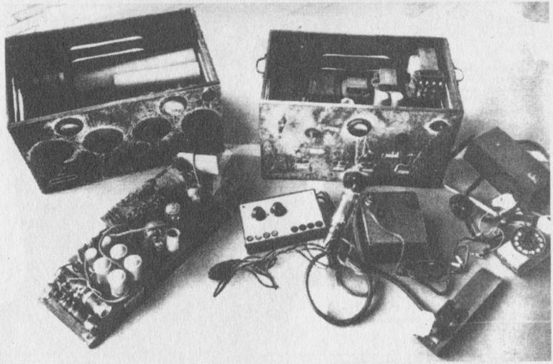 Keywords: Nelegalni.Radio.Komplet.Sparta.gif cs Jedna z ilegálních radiostanic které používal československý odboj za protektorátu během druhé světové války pro spojení domácího hnutí odporu s exilovou vládou Dr Edvarda Beneše v Londýně Jedná se pravděpodobně o fotografii pořízenou gestapem před rokem 1945 jako důkazní foto k vyšetřovacím spisům po zabavení jednoho radiotelegrafického kompletu třídy Sparta v levém horním kvadrantu fotografie se nachází přístroj jehož čelní panel je identický s radiostanicí Sparta I en One of the illegal radiostations Sparta which was used by the Czechoslovak resistance movement in the Protectorate during WWII This types of radios were used for connections the domestic resistance movement with the government of Dr Edvard Beneš in exile in London This is probably the photo created by the Gestapo before 1945 as the evidence of illegal activity of the arrested people This photo was made for purpose of the investigative case files 1944-12-31 PETR Kettner; JEDLIČKA Ivan Milan Tři kontra gestapo Praha Albatros 2003 247 s Albatros Plus ISBN 80-00-01245-6 S První obrazová příloha Historická reportáž rekonstruuje činnost zpravodajské sabotážní a diverzní skupiny Balabán Mašín Morávek; Rok 1 vydání v ČR/SR 1967 CZ Autorem této fotografie je neznámá osoba <br/> EN Author of this photo is unknown person other versions Custom license marker 2016 08 20 PD-anon-70-EU Radio stations Protectorate of Bohemia and Moravia