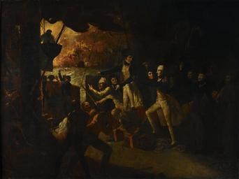 Keywords: Nelson at the Battle of the Nile.jpg Artwork Creator Daniel Orme ca 1800 Oil on canvas cm 149 86 198 12 now lost in which it states that the figures in the exhibited version of the picture were full-size although its whereabouts are not known It was engraved and published by Orme in 1800 and again in 1805 http //74 125 95 132/search q cache R2IxA2xjycMJ www nmm ac uk/collections/nelson/viewObject cfm 3FID 3DBHC0514+BHC0514 cd 1 hl en ct clnk gl us http //collections rmg co uk/collections/objects/12006 html Royal Museums Greenwich PD-old-100 Daniel Orme Paintings in the National Maritime Museum London 1800 paintings 18th-century oil on canvas paintings in the United Kingdom 18th-century paintings of battles Horatio Nelson in art Battle of the Nile United Kingdom in history paintings |