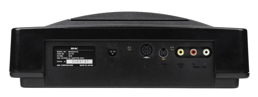 | Keywords: Neo-Geo-CD-TL-Flat-Back.jpg The Neo Geo CD a video game console released by SNK in Japan in 1994 This is the top loader model the most common version and the only one that saw a worldwide release The Neo Geo CD was a conversion of the original Neo Geo AES hardware into a system with cheaper more accessible media The original AES used large cartridges that cost hundreds of dollars each whereas this model used common CDs that cost pennies to produce The system also included a more standard gamepad for the pack-in controller <br>This picture shows the back of the console showing inputs and outputs From left to right DC power in AV multi port S-Video port and composite video and stereo sound ports own 2015-06-20 Evan-Amos User Evan-Amos/EABanner Electronic devices on white background Taken with Nikon D7000 Evan-Amos Neo-Geo |
