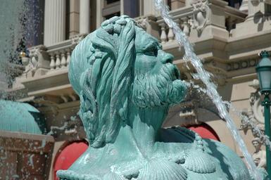 Keywords: neptune statue fountain running water water outdoor stone decorative flowing water fountain architecture concrete bl ue city
