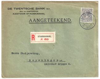 Keywords: Netherlands 1932-10-1 money letter NVPH 193 SF.jpg en Netherlands 1932-10-1 registered money letter franked with 27 5c NVPH 193 single from Stadskanaal to Copenhagen Wax seal of 'De Twentsche Bank' backside as well as arrival Copenhagen 3-10-32 1932-10-01 own scan Post of the Netherlands other versions See more images Netherlands 1932-10-1 money letter NVPH 193 SF jpg Netherlands 1932-10-1 money letter NVPH 193 SF reverse jpg LangSwitch Netherlands 1932-1-21 registered wax sealed cover Custom license marker 2016 09 04 PD-old Covers of the Netherlands 1932 Twentsche Bank Registration labels of the Netherlands |