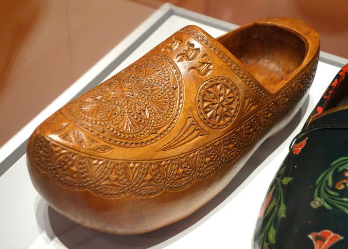 Keywords: Netherlands, Marken island wedding clog, late 19th century - Bata Shoe Museum - DSC00379.JPG en Exhibit in the Bata Shoe Museum Toronto Ontario Canada This item is old enough so that its design is in the public domain The museum permitted photography without restriction 2013-07-04 11 00 24 own Daderot cc-zero Shoes in the Bata Shoe Museum Uploaded with UploadWizard Clogs of the Netherlands Dress and fashion on Marken |