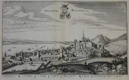Keywords: Neuchatel Merian Est.jpg Neuchâtel vue de l'est par Mérian Gravure originale tirée de Topographia Helvetiae Rhaetiae et Valesia 1642 Matthäus Mérian 1593-1650 PD-old-100 Historical images of Neuchâtel Coats of arms of Neuchâtel