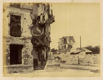 | Keywords: Neuilly. Rue Peyronnet. Partial View of the Destruction WDL1323.png Artwork ru Б аквейе Б уно 1823 1875 гг fr Braquehais Bruno 1823-1875 en Braquehais Bruno 1823-1875 zh 布鲁诺·布拉奇海 ,1823-1875 年 pt Braquehais Bruno 1823-1875 ar براكهيه برونو، 1823-1875 es Braquehais Bruno 1823-1875 ru ейи Улица Пей оне Частичный вид аз ушения fr Neuilly Rue Peyronnet Vue partielle des ruines en Neuilly Rue Peyronnet Partial View of the Destruction zh 讷伊 佩罗内街 损毁建筑的 部景观 pt Neuilly Rue Peyronnet Vista parcial da destruição ar نويي شارع بيرونيه منظر جزئي للحطام ru П ичиной ф анко-п усской войны стал ост нап яженности в отношениях между Ф анцией и П уссией в 1860-х гг Ф анция п и импе ато е аполеоне III была полна ешимости п ове ить астущую силу П уссии и отомстить за то что она ассмат ивала как яд дипломатических унижений П уссия п и канцле е Отто фон Бисма ке считала что война ге манских госуда ств п отив Ф анции под уководством П уссии станет ешающим шагом к созданию единой Ге манской импе ии Конфликт начался 19 июля 1870 г когда Ф анция объявила войну Ф анцузская а мия оказалась ужасно неподготовленной и поте пела сок ушительное по ажение в битве п и Седане отк ыв до огу на Па иж К 19 сентяб я немцкие войска полностью ок ужили го од и начали осаду кото ая п одлилась более четы ех месяцев От езанные от поставок п одовольствия из сельской местности па ижане пытались выжить питаясь собаками кошками и даже животными из па ижского зоопа ка Де евья на Елисейских полях и в па ках были вы ублены и использованы в качестве топлива 5 янва я немецкие войска начали бомба ди овку го ода кото ая п одолжалась по несколько часов каждую ночь в течение 23 суток а ок естности Па ижа было сб ошено около 12 000 сна ядов кото ые убили около 400 человек Па иж сдался 28 янва я в сущности положив конец войне За по ажением ф анцузов последовало на одное восстание и установление в а те 1871г Па ижской коммуны еволюционного п авительства сфо ми ованного в соответствии с ана хистскими и социалистическими п инципами Коммуна была жестоко подавлена в мае 1871 г ф анцузскими войсками п авительства Адольфа Тье а Во в емя неп одолжительного конт оля над Па ижем коммуна ы аз ушали импе ато скую колонну на Вандомской площади Подавление коммуны п ивело к дальнейшим значительным аз ушениям в го оде когда коммуна ы подожгли дво ец Тюиль и Лув и д угие здания К оме того многие здания пост адали или были аз ушены во в емя отчаянной пе ест елки между коммуна ами и конт еволюционными силами Siege de Paris 1870 1871 Осада Па ижа 1870 1871 гг п едставляет собой альбом из 110 фотог афий сделанных Огюстом Б уно Б аквейе 1823 1875 гг ф анцузским фотог афом и п ог ессивным фотожу налистом документи овавшим осаду и последствия бомба ди овок а также аз ушения п оизошедшие во в емя Па ижской коммуны <br>Ф анко-п усская война 1870 1871 гг ; Память ми а; Улица Пей оне Па иж Ф анция ; Уще б нанесенный войной fr La guerre franco-allemande fut provoquée par l escalade des tensions entre la France et la Prusse dans les années 1860 La France sous l empereur Napoléon III était déterminée à contenir la croissance de la puissance prussienne et à venger ce qui était considéré comme une série d humiliations diplomatiques La Prusse sous le chancelier Otto von Bismarck considérait qu une guerre dirigée par la Prusse et menée par les États allemands contre la France serait un acte décisif menant à la création d un empire allemand unifié Le conflit débuta le 19 juillet 1870 jour où la France déclara la guerre L armée française s avéra terriblement mal préparée et subit une défaite désastreuse lors de la bataille de Sedan laissant la voie libre vers Paris Le 19 septembre les Allemands encerclèrent complètement la ville et commencèrent un siège qui allait durer plus de quatre mois Coupés du ravitaillement provenant de la campagne les Parisiens survécurent en mangeant les chiens les chats et même la plupart des animaux du zoo de Paris Les arbres des Champs-Élysées et des parcs furent coupés et brûlés pour servir de combustible