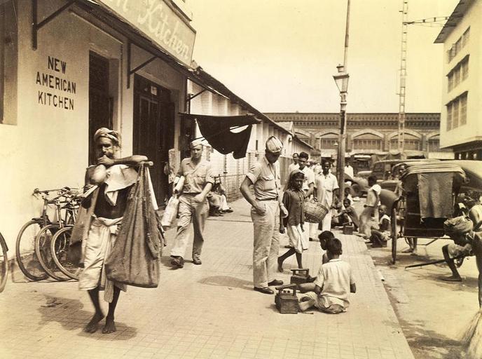 Keywords: New American Kitchen resturant, Calcutta in 1945.jpg After a couple of years in India the bizarre aspects of street life become commonplae to the average soldier as evidenced by the scant notice given the passing snake-walla by the GI at right bargaining for a shine from one of he city's hundreds of bootblacks The New American Kitchen is a popular Chinese restaurant owned by a Portuguese and serves up a steak of chop suey before you can say Teek hai The South Asia Section of the Van Pelt Library University of Pennsylvania recently acquired from a bookdealer a photograph album consisting of 60 photographs of Calcutta taken most likely between 1945-1946 The photographer Mr Clyde Waddell also provided the interesting glosses accompanying each photograph Several attested copies of this work has emerged including one with a 'title page' held by the Southeastern Louisiana University in Hammond Louisiana Mr Waddell was a military photographer Many of his captions sound like annotations that would be found in a typical military magazine The album begins with several general long shots of Calcutta and ends with a picture of dhobi-s washermen washing clothes The text accompanying the last photograph also sounds as if the author intended to finish with that picture of one of the great mysteries of India The annotations have been included because of their intrinsic interest not only to the photographs but to a 'typical' American impression of India at this time 1945 http //www library upenn edu/collections/sasia/calcutta1947/ Clyde Waddell other versions PD-USGov Van Pelt Library University of Pennsylvania - Clyde Waddell Calcutta 1940's photos Uploaded with UploadWizard Original upload log page en wikipedia Shoeshine jpg 2005-10-05 20 14 37 Calcuttaphile 954×710 158393 bytes <nowiki>Photos taken by GIs in Calcutta in 1945 Obtained as a photo album by University of Pennsylvania Library The digital copies of these photos are available without any licence learnt by personal correspondence with nelsond pobox upenn edu Visit http </nowiki> |