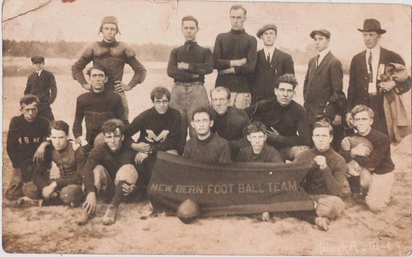 | Keywords: new bern football team, 1912 newbernfootballteam1912 monochrome From PhC.184 Massengill Postcard Collection, State Archives of North Carolina, Raleigh, NC. From PhC.184 Massengill Postcard Collection, State Archives of North Carolina, Raleigh, NC. |