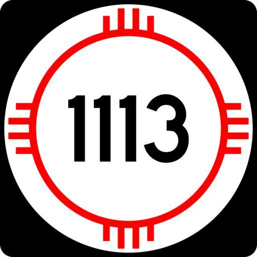 Keywords: New Mexico 1113.svg 750 mm by 750 mm 30 in by 30 in New Mexico state road shield made to the specifications of the http //nmshtd state nm us/upload/images/Plans_Specs_Estimates/Division 20700/701/701 pdf PS E Standard Drawings which specifies a 30 by 30 shield for 3-digit roads Pictures of actual shields were also used for reference Uses the Roadgeek 2005 fonts United States law does not permit the copyrighting of typeface designs and the fonts are meant to be copies of a U S Government-produced work anyway self-created using Inkscape and Image New Mexico 3di svg 2008-03-26 Mr Matté Own work all rights released Public domain New Mexico State Road shields Shields created by User Mr Matté