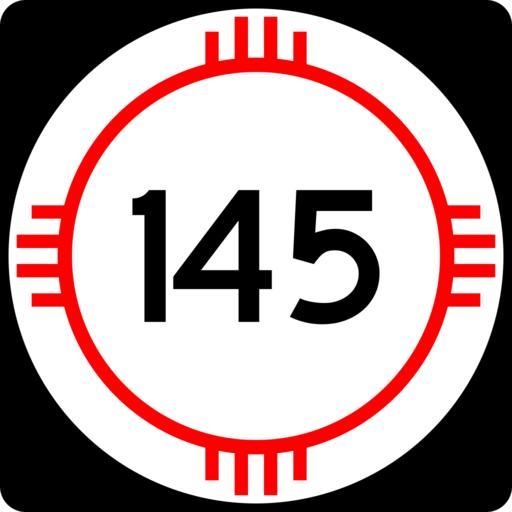 Keywords: New Mexico 145.svg 750 mm by 750 mm 30 in by 30 in New Mexico state road shield made to the specifications of the http //nmshtd state nm us/upload/images/Plans_Specs_Estimates/Division 20700/701/701 pdf PS E Standard Drawings which specifies a 30 by 30 shield for 3-digit roads Pictures of actual shields were also used for reference Uses the Roadgeek 2005 fonts United States law does not permit the copyrighting of typeface designs and the fonts are meant to be copies of a U S Government-produced work anyway self-created using Inkscape and Image New Mexico 3di svg 2008-03-26 Mr Matté Own work all rights released Public domain New Mexico State Road shields Shields created by User Mr Matté