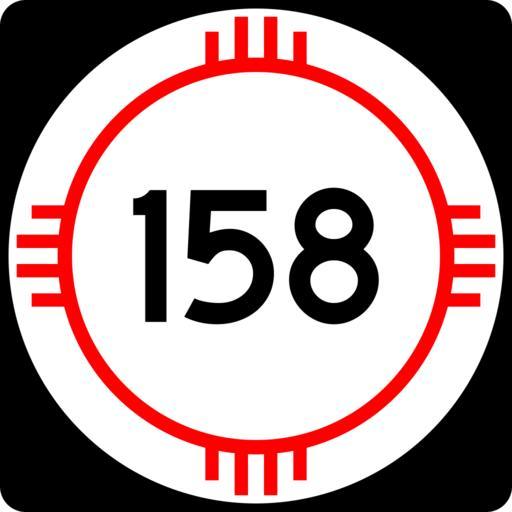 Keywords: New Mexico 158.svg 750 mm by 750 mm 30 in by 30 in New Mexico state road shield made to the specifications of the http //nmshtd state nm us/upload/images/Plans_Specs_Estimates/Division 20700/701/701 pdf PS E Standard Drawings which specifies a 30 by 30 shield for 3-digit roads Pictures of actual shields were also used for reference Uses the Roadgeek 2005 fonts United States law does not permit the copyrighting of typeface designs and the fonts are meant to be copies of a U S Government-produced work anyway self-created using Inkscape and Image New Mexico 3di svg 2008-03-26 Mr Matté Own work all rights released Public domain Created with Inkscape New Mexico State Road shields 158 number Shields created by User Mr Matté |