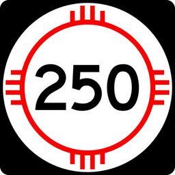 Keywords: New Mexico 250.svg 750 mm by 750 mm 30 in by 30 in New Mexico state road shield made to the specifications of the http //nmshtd state nm us/upload/images/Plans_Specs_Estimates/Division 20700/701/701 pdf PS E Standard Drawings which specifies a 30 by 30 shield for 3-digit roads Pictures of actual shields were also used for reference Uses the Roadgeek 2005 fonts United States law does not permit the copyrighting of typeface designs and the fonts are meant to be copies of a U S Government-produced work anyway self-created using Inkscape and Image New Mexico 3di svg 2008-01-26 Mr Matté New Mexico State Road shields 250 Shields created by User Mr Matté |