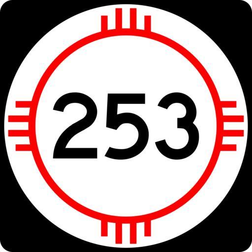 Keywords: New Mexico 253.svg 750 mm by 750 mm 30 in by 30 in New Mexico state road shield made to the specifications of the http //nmshtd state nm us/upload/images/Plans_Specs_Estimates/Division 20700/701/701 pdf PS E Standard Drawings which specifies a 30 by 30 shield for 3-digit roads Pictures of actual shields were also used for reference Uses the Roadgeek 2005 fonts United States law does not permit the copyrighting of typeface designs and the fonts are meant to be copies of a U S Government-produced work anyway self-created using Inkscape and Image New Mexico 3di svg 2008-03-26 Mr Matté Own work all rights released Public domain New Mexico State Road shields Shields created by User Mr Matté |