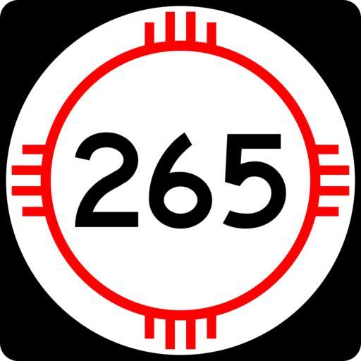 Keywords: New Mexico 265.svg 750 mm by 750 mm 30 in by 30 in New Mexico state road shield made to the specifications of the http //nmshtd state nm us/upload/images/Plans_Specs_Estimates/Division 20700/701/701 pdf PS E Standard Drawings which specifies a 30 by 30 shield for 3-digit roads Pictures of actual shields were also used for reference Uses the Roadgeek 2005 fonts United States law does not permit the copyrighting of typeface designs and the fonts are meant to be copies of a U S Government-produced work anyway self-created using Inkscape and Image New Mexico 3di svg 2008-03-26 Mr Matté Own work all rights released Public domain New Mexico State Road shields Shields created by User Mr Matté |