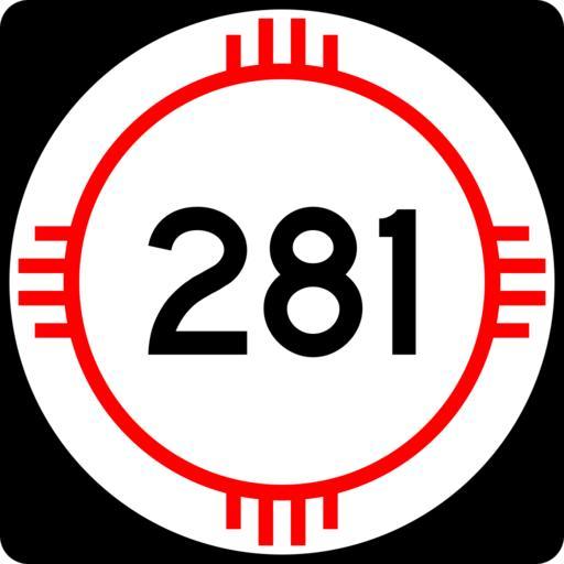 Keywords: New Mexico 281.svg 750 mm by 750 mm 30 in by 30 in New Mexico state road shield made to the specifications of the http //nmshtd state nm us/upload/images/Plans_Specs_Estimates/Division 20700/701/701 pdf PS E Standard Drawings which specifies a 30 by 30 shield for 3-digit roads Pictures of actual shields were also used for reference Uses the Roadgeek 2005 fonts United States law does not permit the copyrighting of typeface designs and the fonts are meant to be copies of a U S Government-produced work anyway self-created using Inkscape and Image New Mexico 3di svg 2008-03-26 Mr Matté Own work all rights released Public domain New Mexico State Road shields Shields created by User Mr Matté |