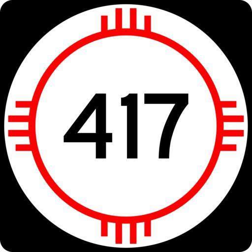 Keywords: New Mexico 417.svg 750 mm by 750 mm 30 in by 30 in New Mexico state road shield made to the specifications of the http //nmshtd state nm us/upload/images/Plans_Specs_Estimates/Division 20700/701/701 pdf PS E Standard Drawings which specifies a 30 by 30 shield for 3-digit roads Pictures of actual shields were also used for reference Uses the Roadgeek 2005 fonts United States law does not permit the copyrighting of typeface designs and the fonts are meant to be copies of a U S Government-produced work anyway self-created using Inkscape and Image New Mexico 3di svg 2008-03-26 Mr Matté Own work all rights released Public domain New Mexico State Road shields Shields created by User Mr Matté |