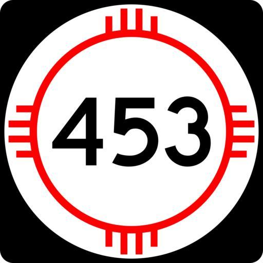 Keywords: New Mexico 453.svg 750 mm by 750 mm 30 in by 30 in New Mexico state road shield made to the specifications of the http //nmshtd state nm us/upload/images/Plans_Specs_Estimates/Division 20700/701/701 pdf PS E Standard Drawings which specifies a 30 by 30 shield for 3-digit roads Pictures of actual shields were also used for reference Uses the Roadgeek 2005 fonts United States law does not permit the copyrighting of typeface designs and the fonts are meant to be copies of a U S Government-produced work anyway self-created using Inkscape and Image New Mexico 3di svg 2008-03-26 Mr Matté Own work all rights released Public domain New Mexico State Road shields Shields created by User Mr Matté |