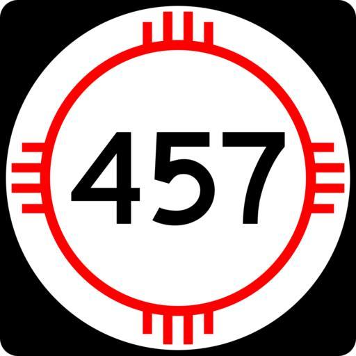 Keywords: New Mexico 457.svg 750 mm by 750 mm 30 in by 30 in New Mexico state road shield made to the specifications of the http //nmshtd state nm us/upload/images/Plans_Specs_Estimates/Division 20700/701/701 pdf PS E Standard Drawings which specifies a 30 by 30 shield for 3-digit roads Pictures of actual shields were also used for reference Uses the Roadgeek 2005 fonts United States law does not permit the copyrighting of typeface designs and the fonts are meant to be copies of a U S Government-produced work anyway self-created using Inkscape and Image New Mexico 3di svg 2008-03-26 Mr Matté Own work all rights released Public domain New Mexico State Road shields Shields created by User Mr Matté |