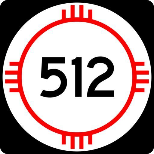 Keywords: New Mexico 512.svg 750 mm by 750 mm 30 in by 30 in New Mexico state road shield made to the specifications of the http //nmshtd state nm us/upload/images/Plans_Specs_Estimates/Division 20700/701/701 pdf PS E Standard Drawings which specifies a 30 by 30 shield for 3-digit roads Pictures of actual shields were also used for reference Uses the Roadgeek 2005 fonts United States law does not permit the copyrighting of typeface designs and the fonts are meant to be copies of a U S Government-produced work anyway self-created using Inkscape and Image New Mexico 3di svg 2008-03-26 Mr Matté Own work all rights released Public domain New Mexico State Road shields Shields created by User Mr Matté