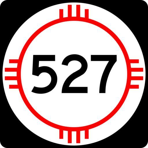 Keywords: New Mexico 527.svg 750 mm by 750 mm 30 in by 30 in New Mexico state road shield made to the specifications of the http //nmshtd state nm us/upload/images/Plans_Specs_Estimates/Division 20700/701/701 pdf PS E Standard Drawings which specifies a 30 by 30 shield for 3-digit roads Pictures of actual shields were also used for reference Uses the Roadgeek 2005 fonts United States law does not permit the copyrighting of typeface designs and the fonts are meant to be copies of a U S Government-produced work anyway self-created using Inkscape and Image New Mexico 3di svg 2008-03-26 Mr Matté Own work all rights released Public domain New Mexico State Road shields Shields created by User Mr Matté |