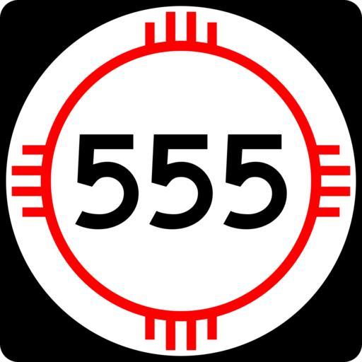 Keywords: New Mexico 555.svg 750 mm by 750 mm 30 in by 30 in New Mexico state road shield made to the specifications of the http //nmshtd state nm us/upload/images/Plans_Specs_Estimates/Division 20700/701/701 pdf PS E Standard Drawings which specifies a 30 by 30 shield for 3-digit roads Pictures of actual shields were also used for reference Uses the Roadgeek 2005 fonts United States law does not permit the copyrighting of typeface designs and the fonts are meant to be copies of a U S Government-produced work anyway self-created using Inkscape and Image New Mexico 3di svg 2008-03-26 Mr Matté Own work all rights released Public domain New Mexico State Road shields Shields created by User Mr Matté |