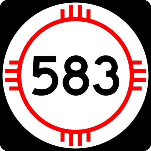 Keywords: New Mexico 583.svg 750 mm by 750 mm 30 in by 30 in New Mexico state road shield made to the specifications of the http //nmshtd state nm us/upload/images/Plans_Specs_Estimates/Division 20700/701/701 pdf PS E Standard Drawings which specifies a 30 by 30 shield for 3-digit roads Pictures of actual shields were also used for reference Uses the Roadgeek 2005 fonts United States law does not permit the copyrighting of typeface designs and the fonts are meant to be copies of a U S Government-produced work anyway self-created using Inkscape and Image New Mexico 3di svg 2008-03-26 Mr Matté Own work all rights released Public domain New Mexico State Road shields Shields created by User Mr Matté |